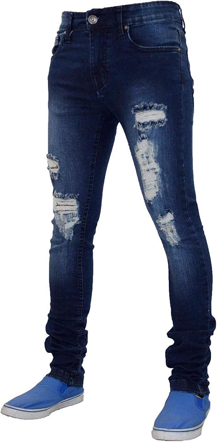 Men S New Stylish Dark Blue Wear Distressed Ripped Slim Fit Jeans Beautifulhalo Com from images.beautifulhalo.com